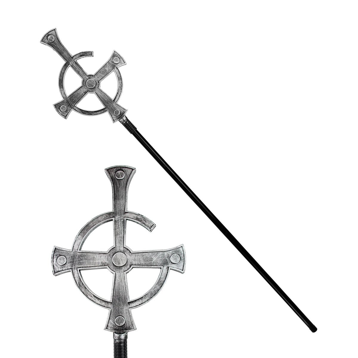 Lägg till ett imponerande tillbehör till din Halloweenkostym med denna hopfällbara stav med kors. Med en längd på 1,45 m och en svart och silverfärgad finish är den perfekt för präster, vampyrer eller andra temadräkter.