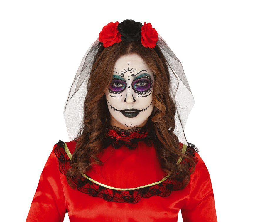 Halloween Tiara Slöja Och Blommor Röd