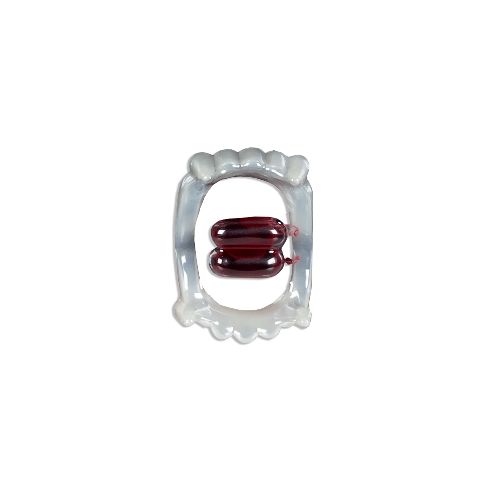 Produktinnehåll: Vampyr tänder, 2 falskt blod kapslar