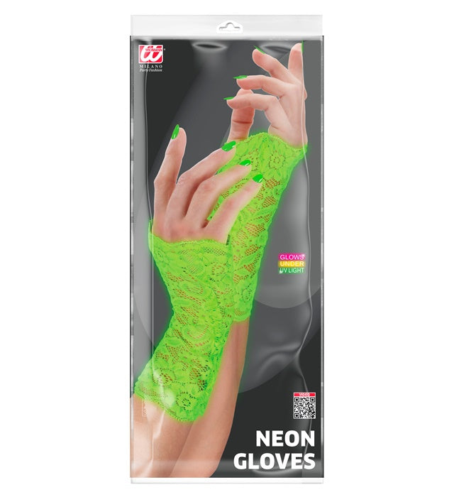 Lägg till en slående och lekfull touch till din outfit med dessa neongröna spetshandskar. Perfekt som en statementaccessoar för festliga och retro looker.