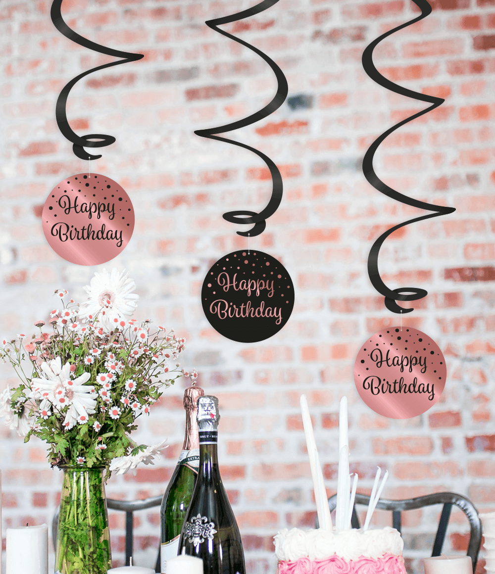 Hängande dekoration 25 år Happy Birthday Svart Rosa 17cm 3st