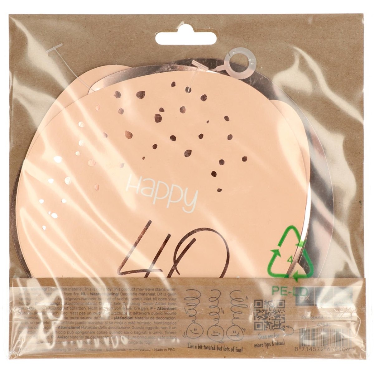 Hängande dekoration 40 år roséguld 75cm 5st