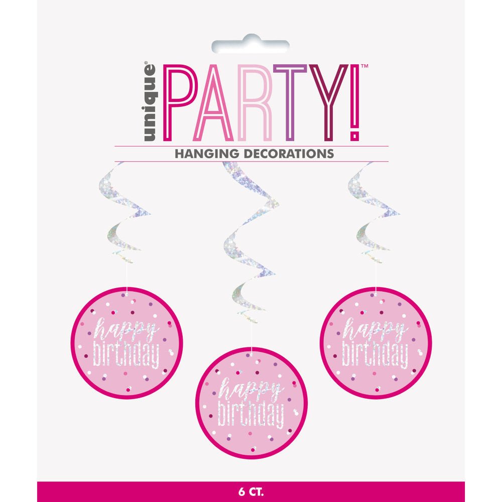 Hängande dekoration Happy Birthday Rosa 81cm 6st
