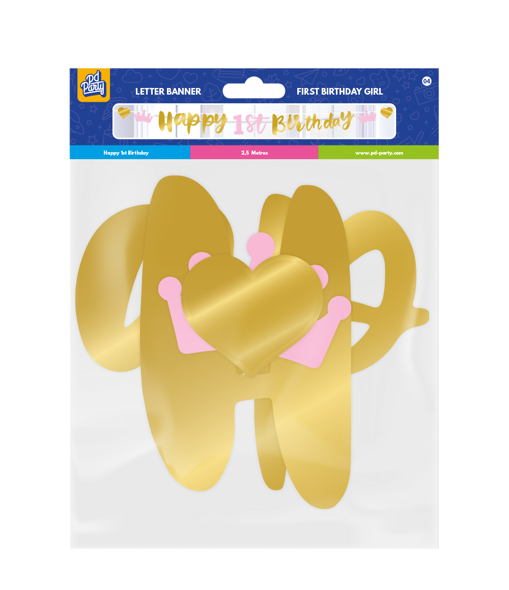Grattis på 1:a födelsedagen Letterslinger Guld Rosa