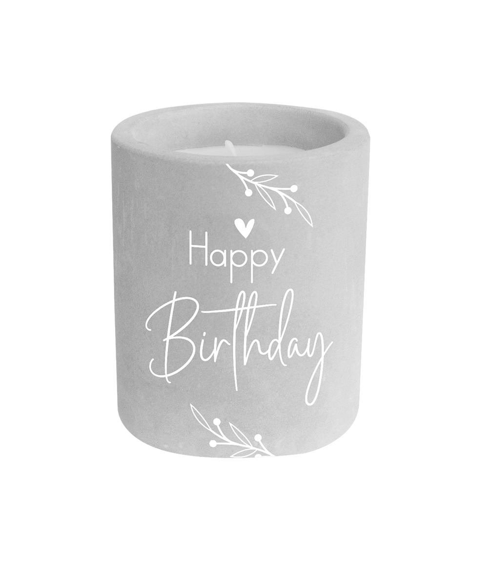 Happy Birthday Cementljus Grå 8cm