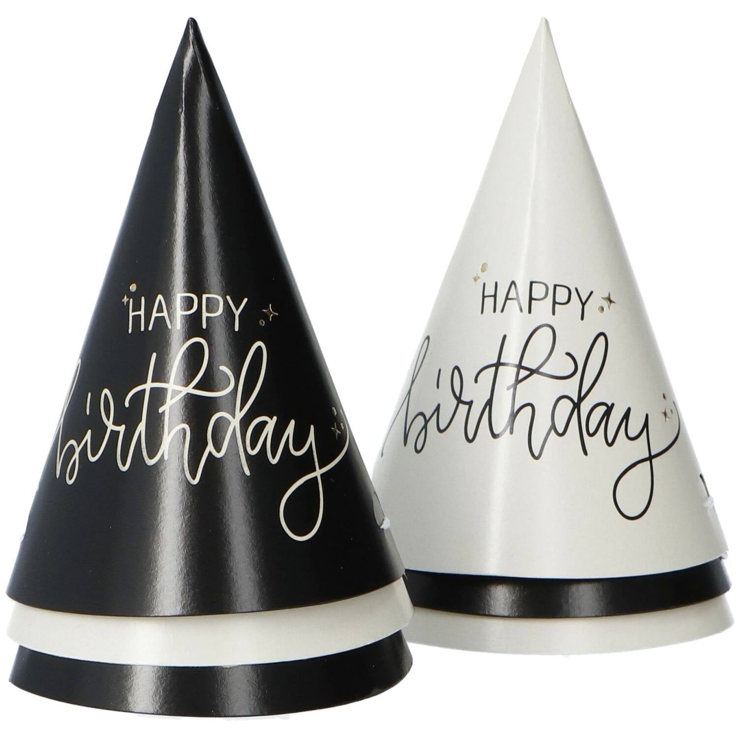 Happy Birthday Party Hattar Svart 6st