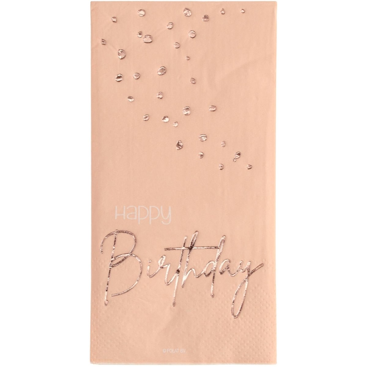 Happy Birthday Servetter Pastellrosa 33cm 10st