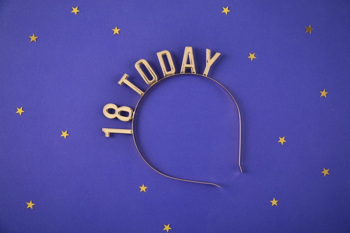 Innehåll: Hårband i metall med texten 18 Today i guldfärg.