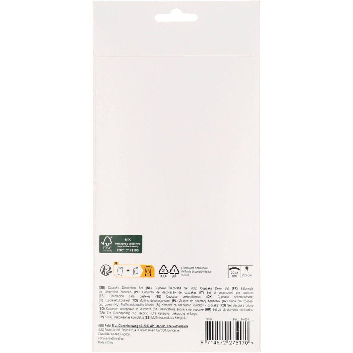 Söta hästar! Cupcake-dekorationsset - Glada hästar - 6 delar. Innehåll: 6 set, vart och ett bestående av ett cupcakeomslag och en samlare med pappersfigur. Kan t.ex. användas under följande kalas/festtillfällen: Barnkalas, Födelsedag, Temakalas. Allt blir ännu godare med den här roliga hästcupcake-dekorationen: 6 st cocktailpinnar à ca 10 cm med en häst, ridmössa eller blomma på varje och 6 st rosa wrappers à ca 22,5 cm med en rosa hästsko på toppen. Detta set med cupcake-dekorationer tillhör Happy Horses-kollektionen från Folat. Den här artikeln är tillverkad av papper.