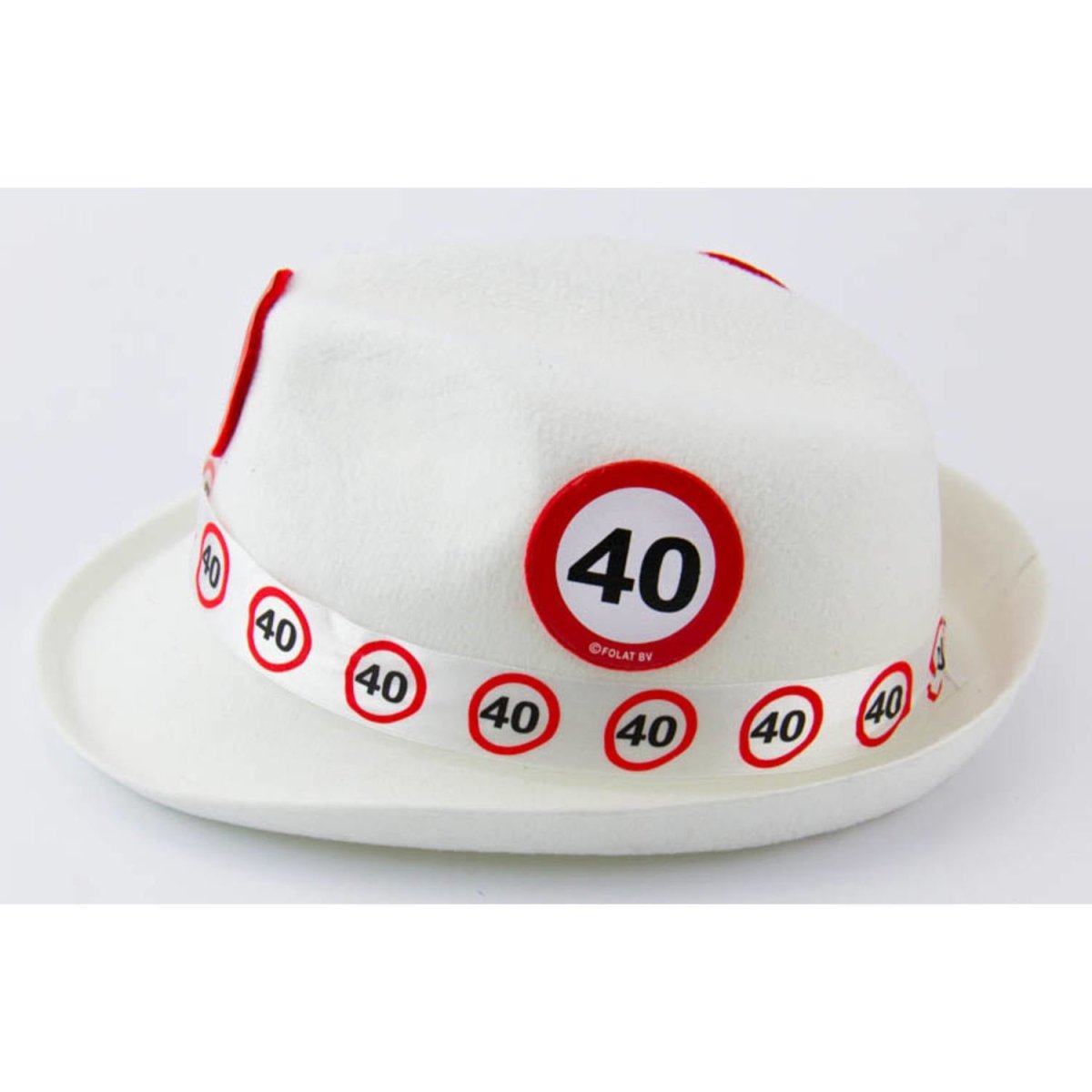 40 Years Traffic Sign White Trilby Hat. Innehåll: 1 hatt, färg: Vit. Kan t.ex. användas under följande fest/festtillfällen: Karneval, temafest, Halloween. Denna hatt är 23cm bred och 37cm hög. Artikeln är tillverkad av polyester.