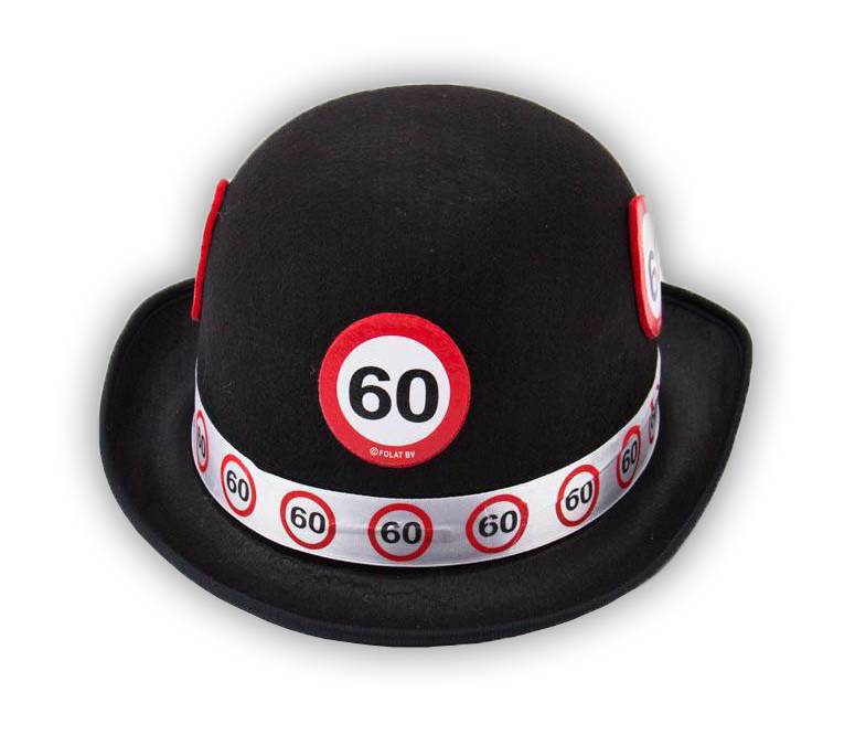 60 Years Traffic Sign Black Bowler Hat. Innehåll: 1 hatt, färg: Svart. Exempelvis att använda under följande fest/festtillfällen: Karneval, temafest, Halloween. Denna hatt är 20,5 cm bred och 11 cm hög. Artikeln är tillverkad av polyester.