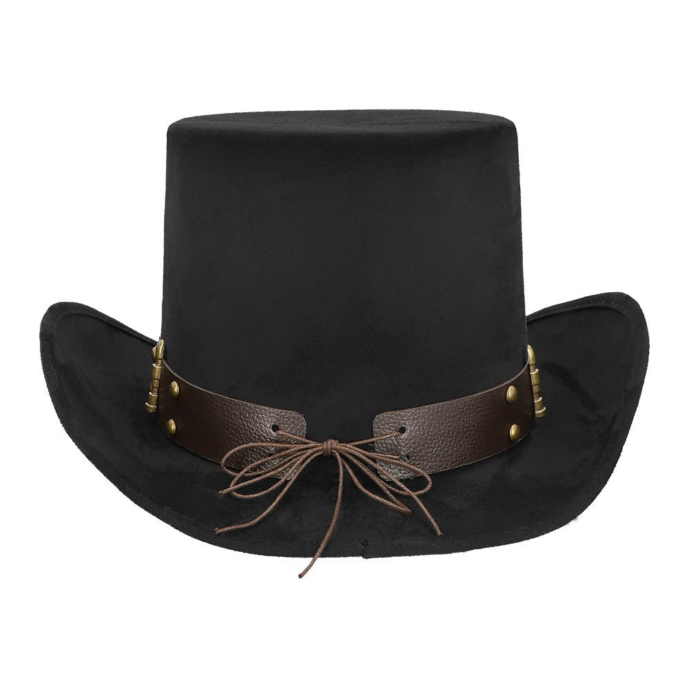 Fullända din industriella steampunk-look med den imponerande Bulletpunk-hatten. Denna snygga toppluva har en lyxig mockalook och är avslutad med ett tufft läderband fullt av metalldetaljer - inklusive en örn och kulformade nitar - för den typiska retro-futuristiska steampunk-looken. Tack vare det elastiska innerbandet har hatten en bekväm passform och sitter på plats under alla fester.