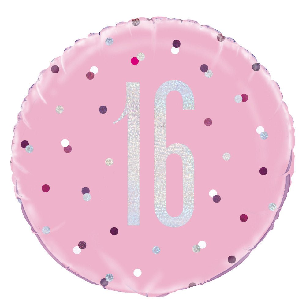 Heliumballong 16 år rosa 45 cm tom