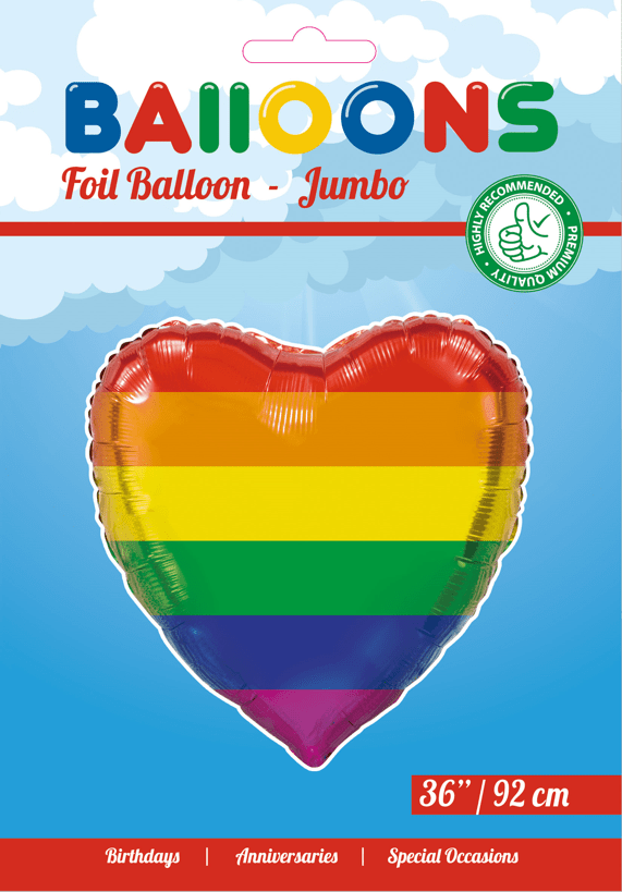Heliumballong hjärta regnbåge XL tom 92 cm