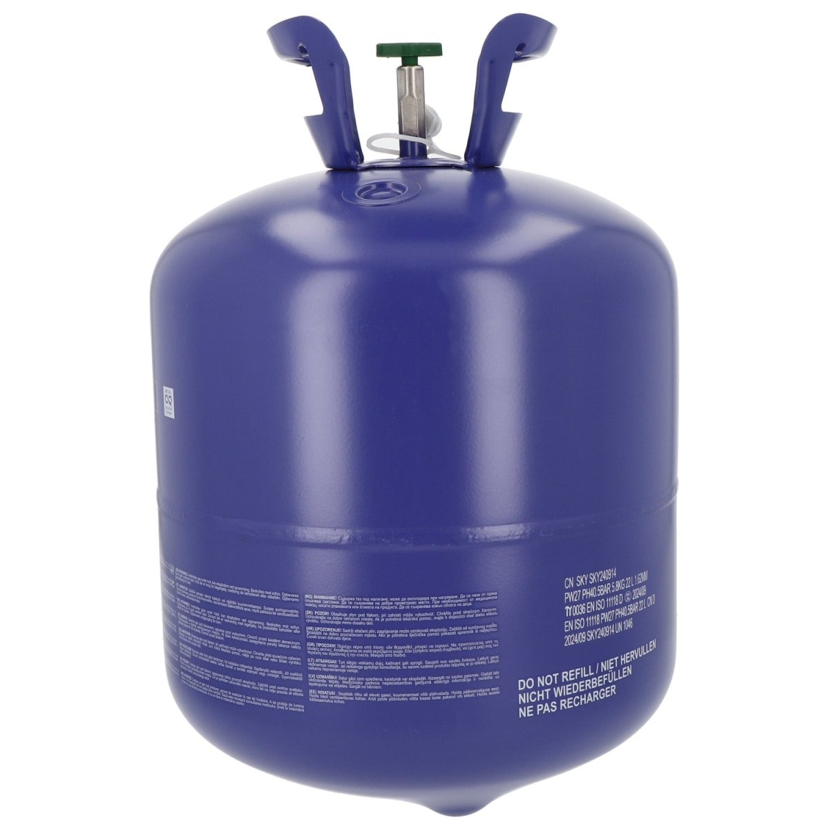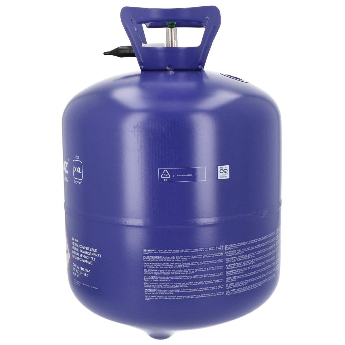 Använd Heliumtank: heliumtank 80 (ej återanvändbar) med påfyllningsventil exklusive ballonger och band