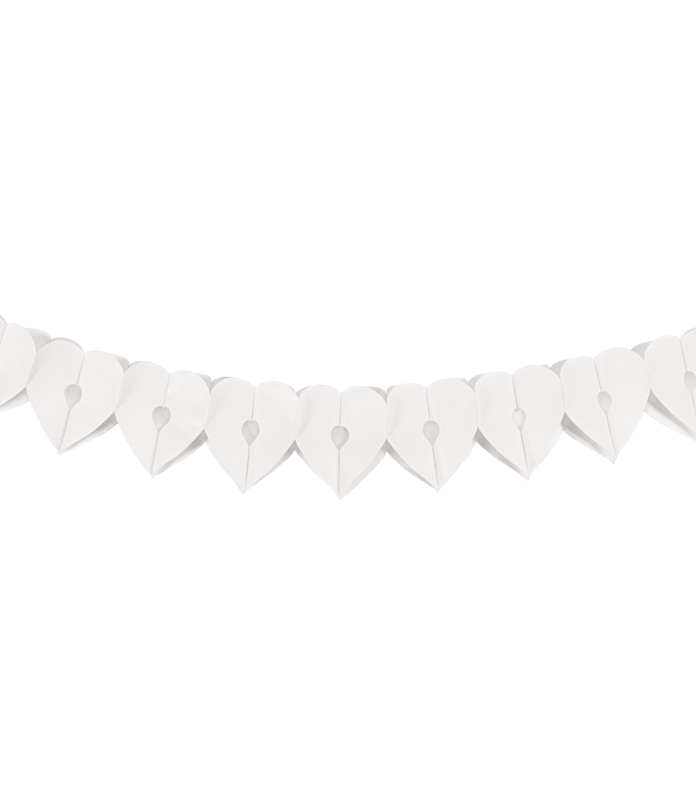 Pappersgirlanger är ett absolut måste i varje festbutik, och Paper garland - Heart white är inget undantag! Den vackra vita färgen och hjärtmotivet gör dessa girlanger perfekta för att dekorera ett rum. Med en längd på 6 meter är du dessutom säker på att få gott om dekorationer och göra det till en glad helhet. Förutom dessa pappersgirlanger hittar du fler olika typer av girlanger hos oss. Se till att du presenterar dessa tillsammans i butiken, så att kunden direkt kan se vad som finns tillgängligt.