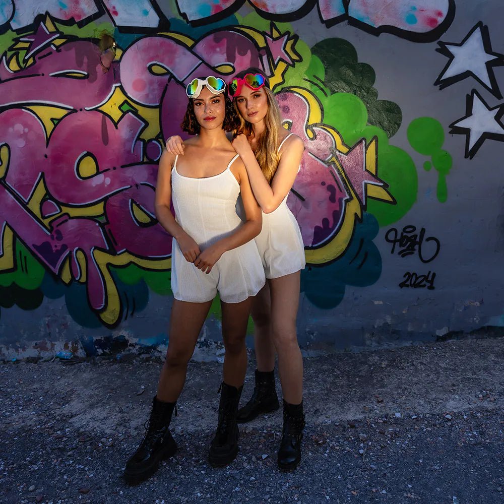 Dessa söta hjärtformade rosa skidglasögon är en lekfull accessoar som tar en festival- eller festoutfit till nästa nivå. Oavsett om någon går all in på en festival, fortsätter sent in på natten under afterski eller klär ut sig i en rolig retroskiddräkt under karnevalen, är dessa unika skidglasögon ett måste!