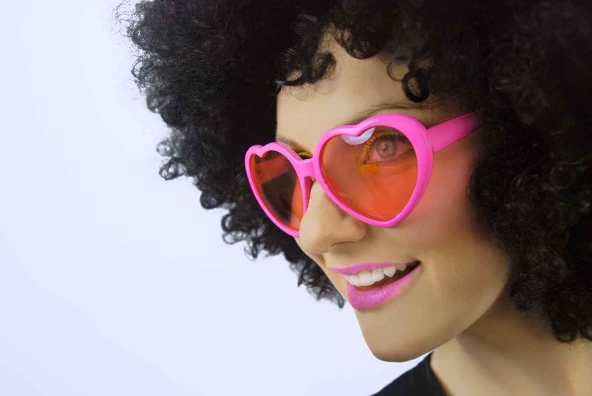 Glasögon Hearts, rosa, storlek: bågens bredd 14 centimeter, bågens höjd 6 centimeter, skalmarnas längd 13 centimeter.