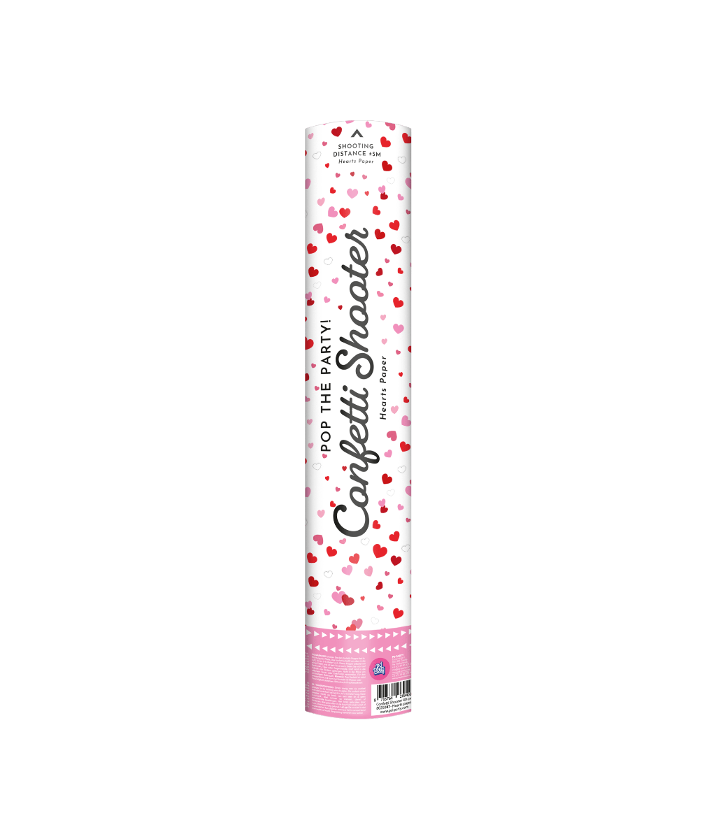 Skapa liv på festen med denna 40 cm konfettispruta! Den skjuter röda pappershjärtan upp till 5 meter bort, perfekt för födelsedagar, bröllop, årsdagar och andra festliga tillfällen. Passar även perfekt att använda på Alla hjärtans dag.