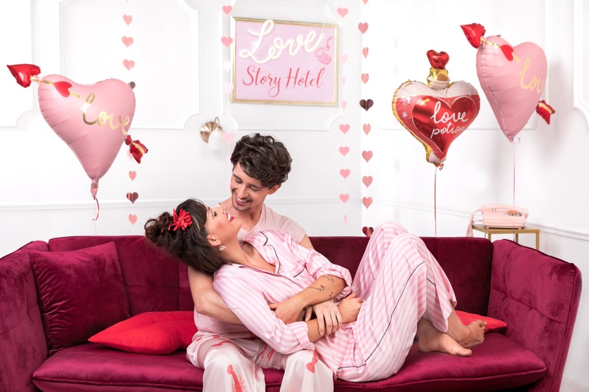 Sydd girlang Hjärtan i rosa färg, av papper, längd ca 3,5 m, bredd ca 8 cm.