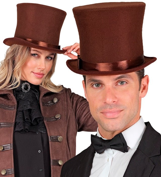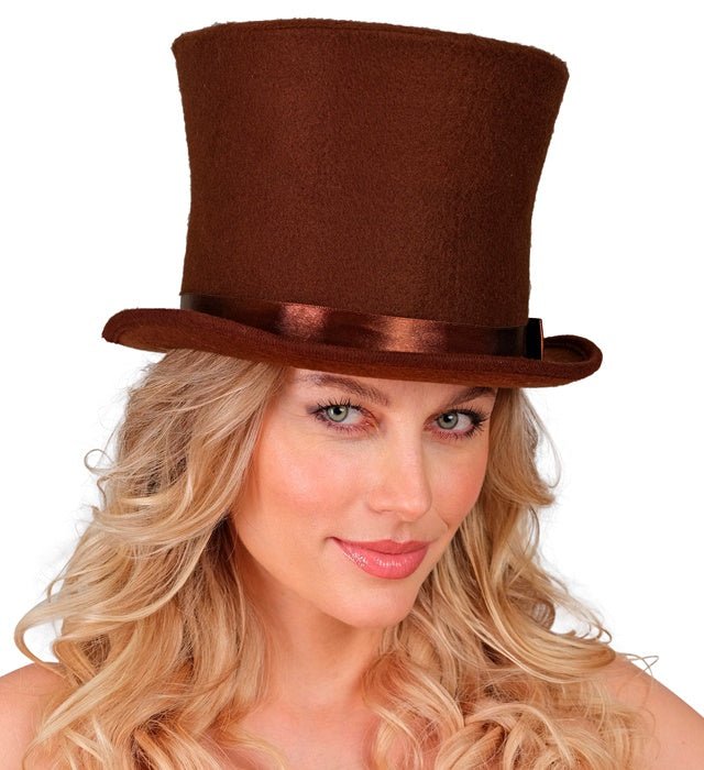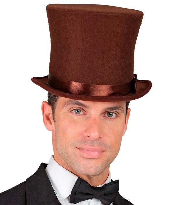 Giv din outfit en klassisk och elegant look med denna bruna höga hatt. Perfekt för temafester, karnevaler, maskerader eller historiska kostymer.
