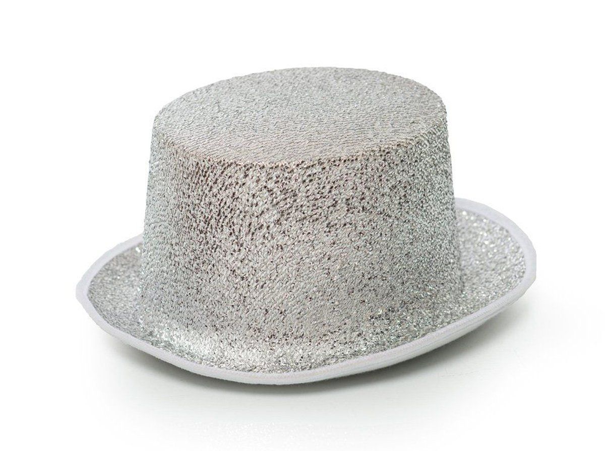 High Hat Glitter i silver är en iögonfallande och festlig accessoar som ger en omedelbar glamorös look. Den skimrande ytan gör denna hatt perfekt för karnevaler, maskerader, shower och andra festliga tillfällen.