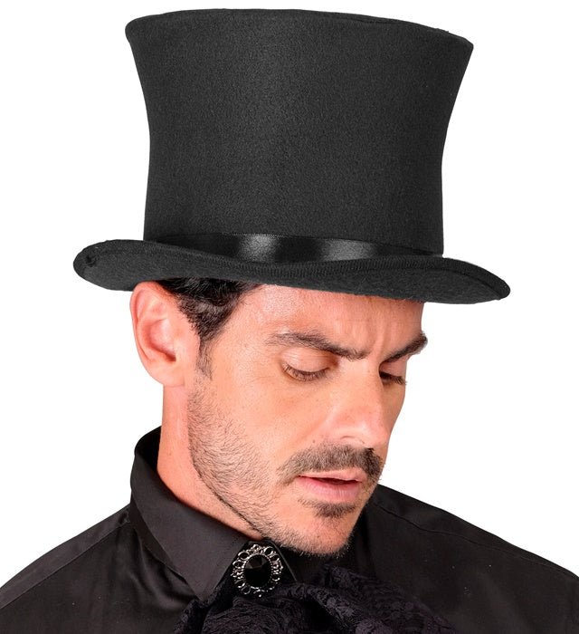 Fullända din outfit med denna klassiska svarta höga hatt. Perfekt för temafester, karnevaler, shower, maskeradfester eller eleganta kostymer.