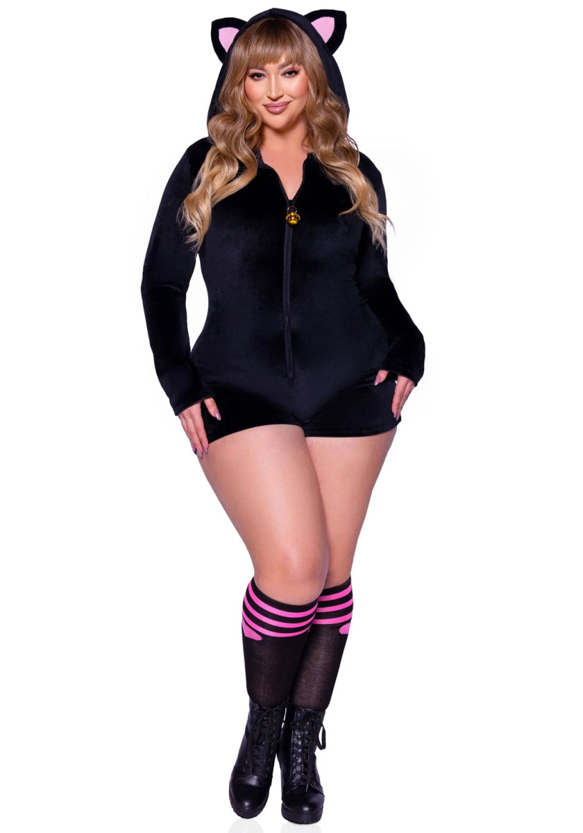 Släpp loss din inre kattcharm i denna sammetskattkattdräkt i Plus Size! Denna söta och bekväma dräkt kommer att hålla dig varm och mysig, perfekt för Halloween och karneval. Den långärmade rompern, mjuka rosa öronen och mjuka sammetstyget ger en oemotståndlig look! 🖤🐱