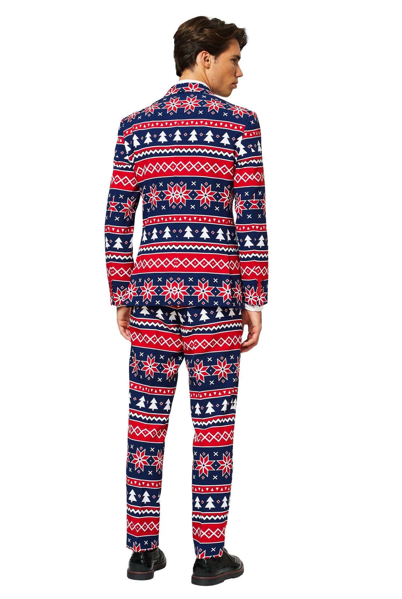 Fan av jultröjor, men inte ett fan av kliande ull? Vi förstår dig. Den här julkostymen har ett roligt mönster som klassiska jultröjor, är lika bekväm som din favoritpyjamas och har den snygga passformen som en skräddarsydd kostym. En bra kombination, eller hur? Skäm bort dig själv i jul. Du förtjänar det.