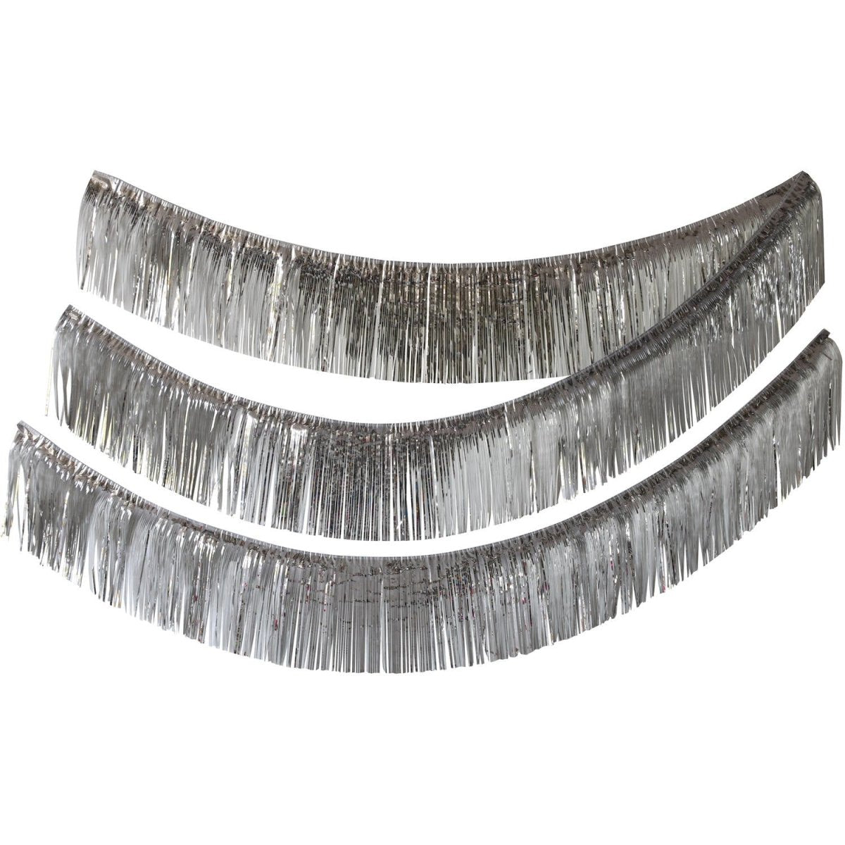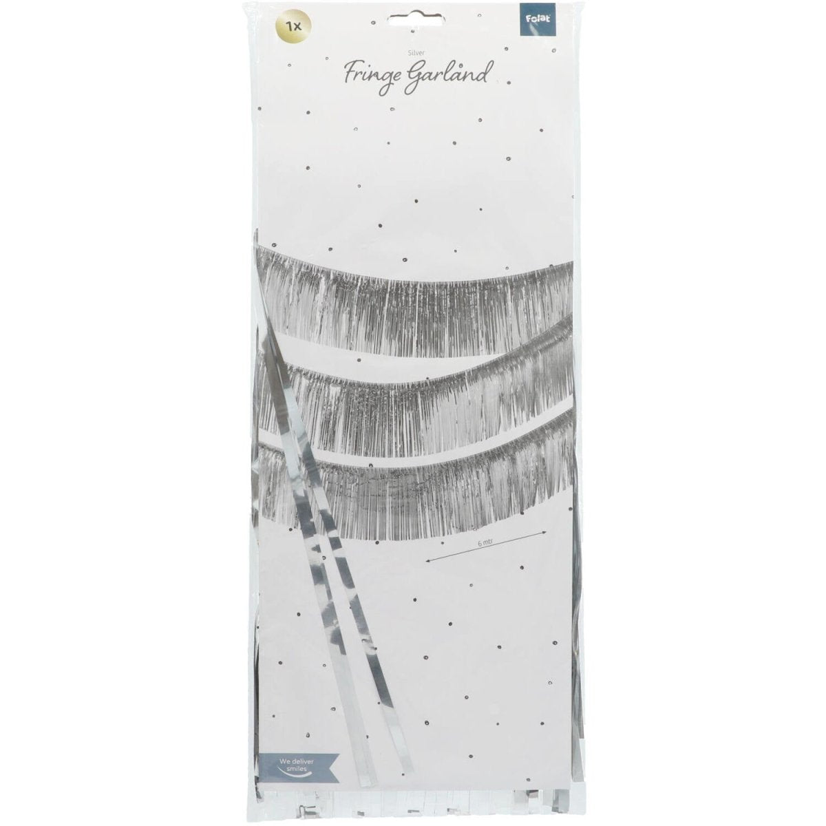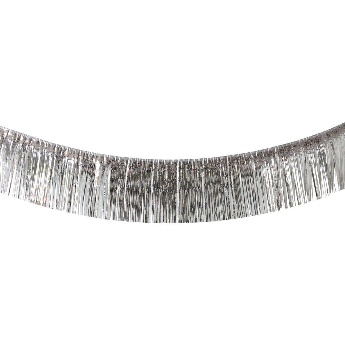 Fransgirlang Silver - 6 meter. Innehåll: 1 krans. Färg: Silverfärgad. Kan t.ex. användas under följande fest/festtillfällen: jubileum, födelsedag, nyårsafton. Denna girlang är 6 meter lång. Artikeln är tillverkad av folie.
