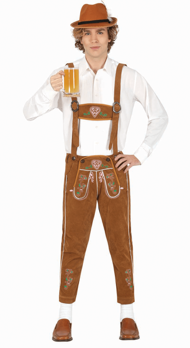 Läderbyxor Långa bruna justerbara hängslen