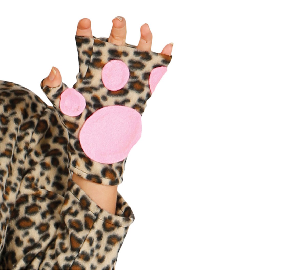Innehåll: leopardklänning med huva och svans samt handskar