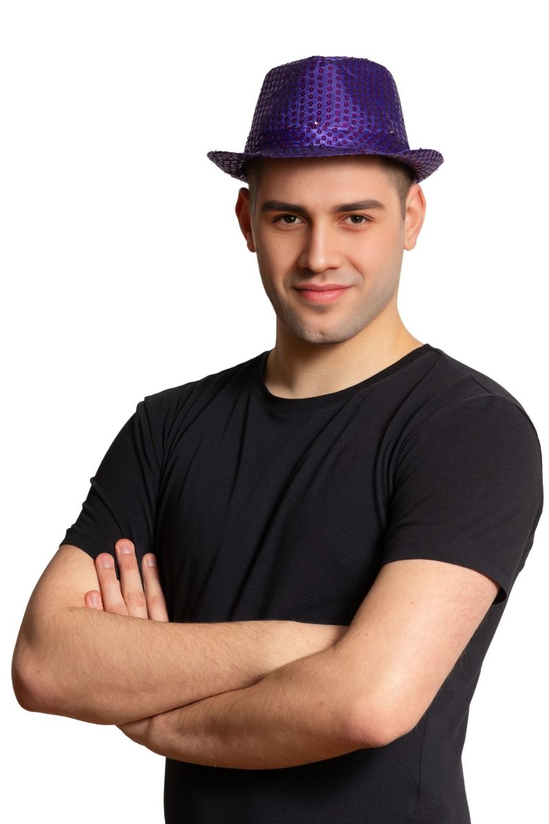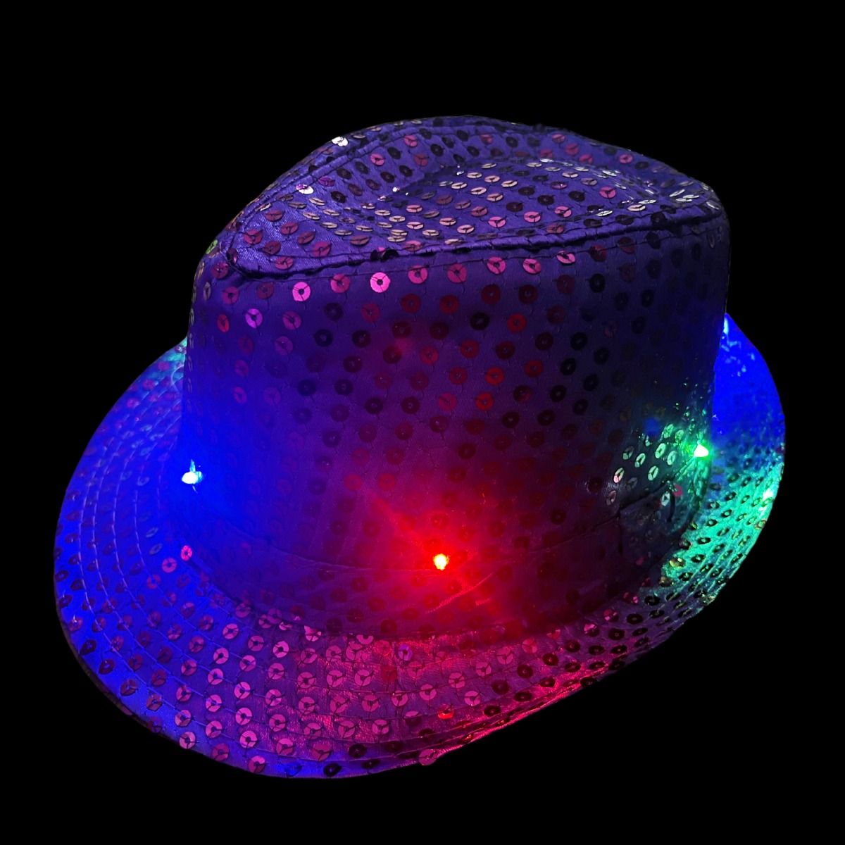 Fullända vilken outfit som helst med dessa glittrande lila paljetthattar! Varje hatt är dekorerad med skimrande paljetter och har inbyggda lampor för en extra festlig effekt. Perfekt för maskerader, karnevaler, festivaler eller nyårsafton.