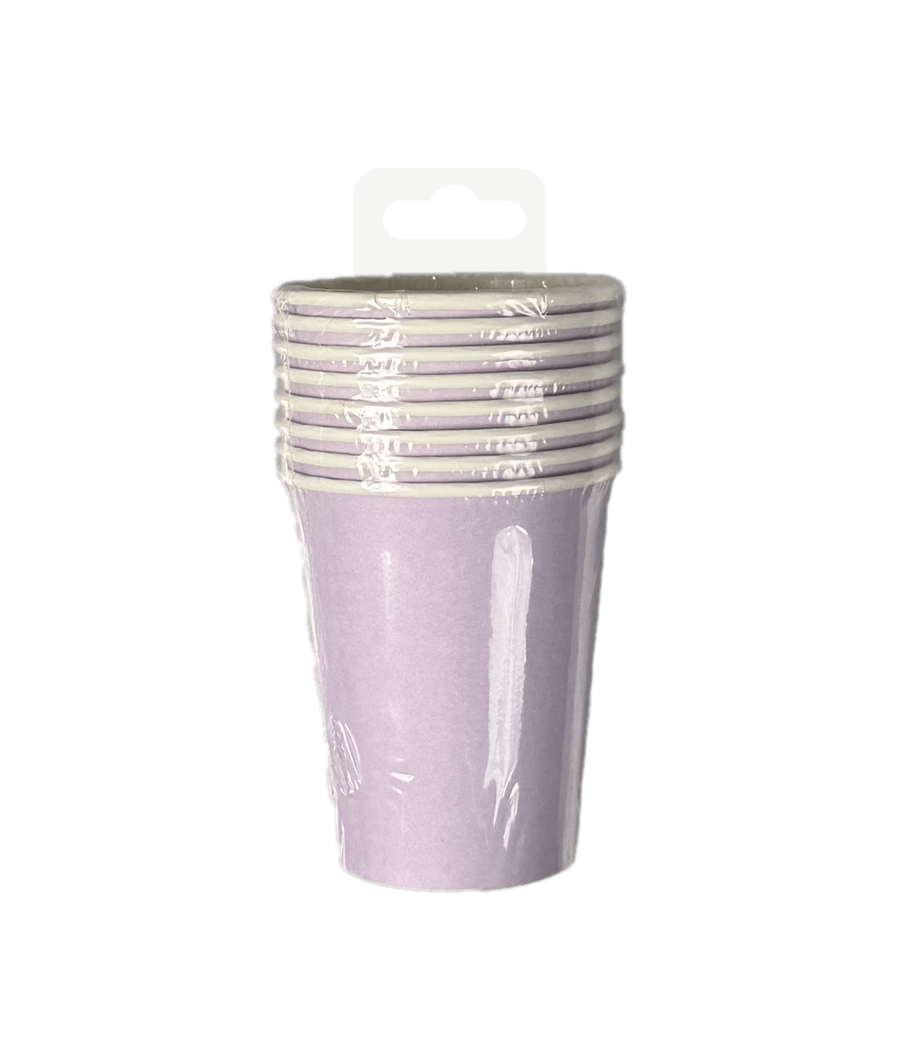 The Cups - Pastel purple är den perfekta dekorationsartikeln på ett kalas där pastellfärgen lila är temat. Muggarna mäter 8,5 x 7 cm, är förpackade per 8 och passar perfekt tillsammans med de andra pastellila artiklarna som konfetti, servetter, tallrikar, dukar, snackslådor och flagglinjen. Presentera dessa artiklar tillsammans så att det blir omedelbart tydligt för kunden vad denna kollektion består av. Dessa muggar är tillverkade av papper, vilket gör det till ett miljövänligt val!