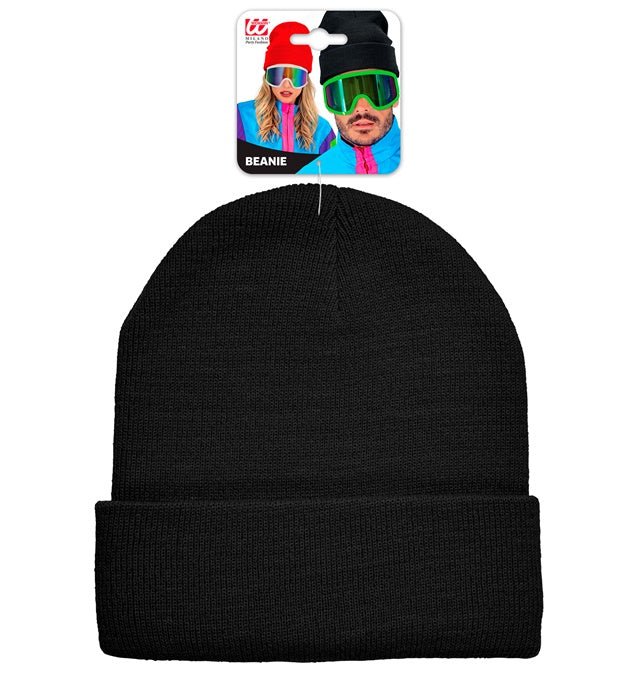 Denna svarta beanie är en tidlös och mångsidig accessoar som passar till nästan alla kläder. Perfekt för Karneval, temafester eller för att komplettera en avslappnad eller uppklädd look.