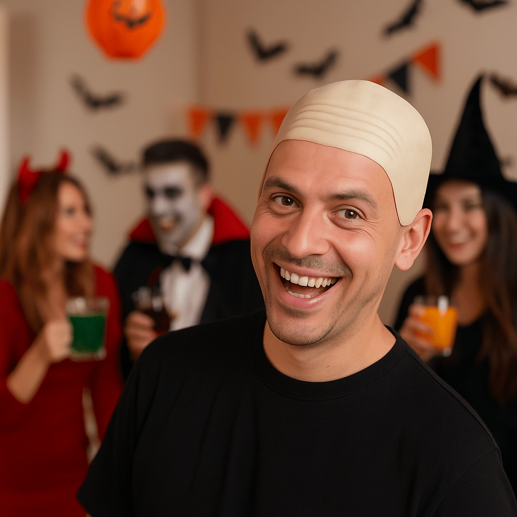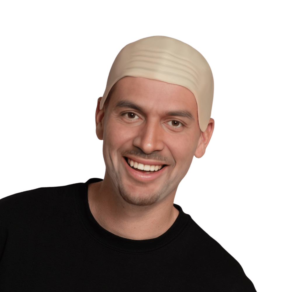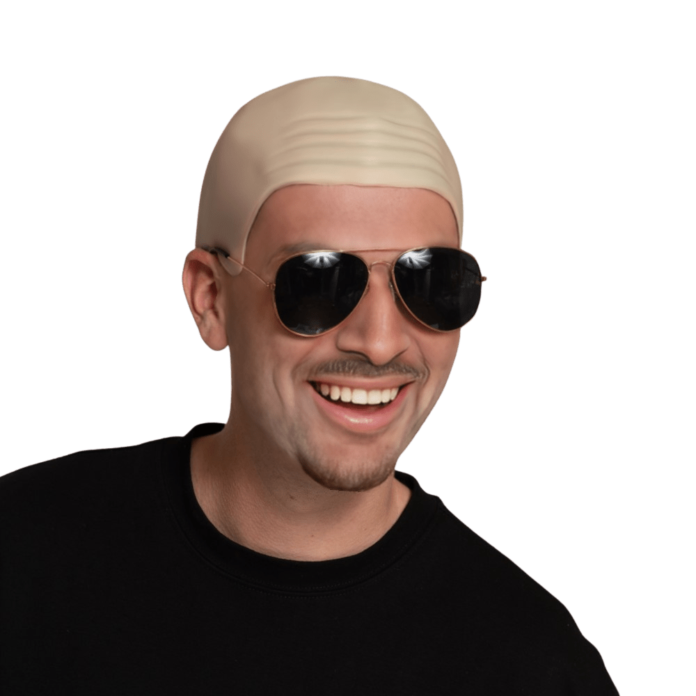 Satsa på en rolig kostymaccent med detta skalliga huvud för män! Denna peruk i ljus hudfärg ger omedelbart effekten av ett helt skalligt huvud - perfekt för karneval, maskerad, teater, fel partyn eller som ett roligt tillägg till en kostym.