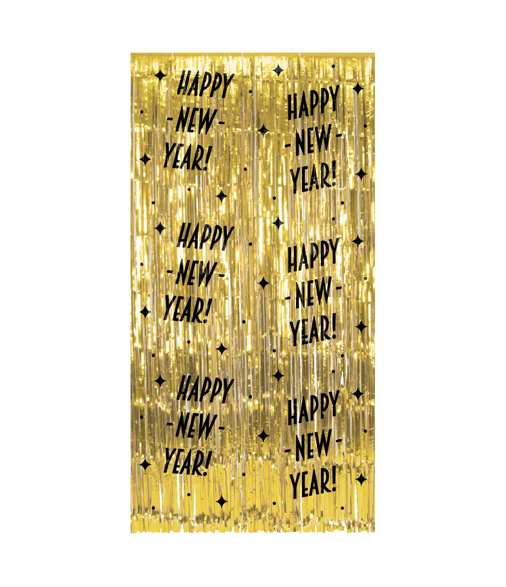 Happy New Year Dörrgardin Guld Svart