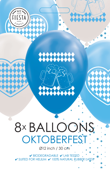 Oktoberfest Ballonger Blå Vit 30cm 8st