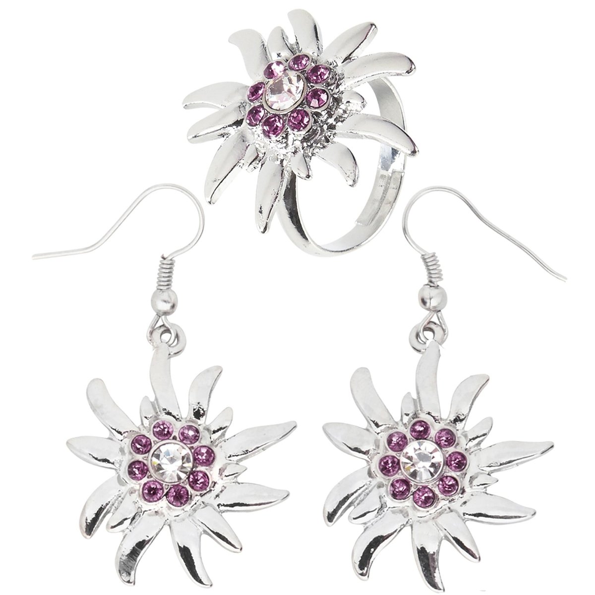 Oktoberfest Accessoarer Set Rosa Silver Örhängen Och Ring