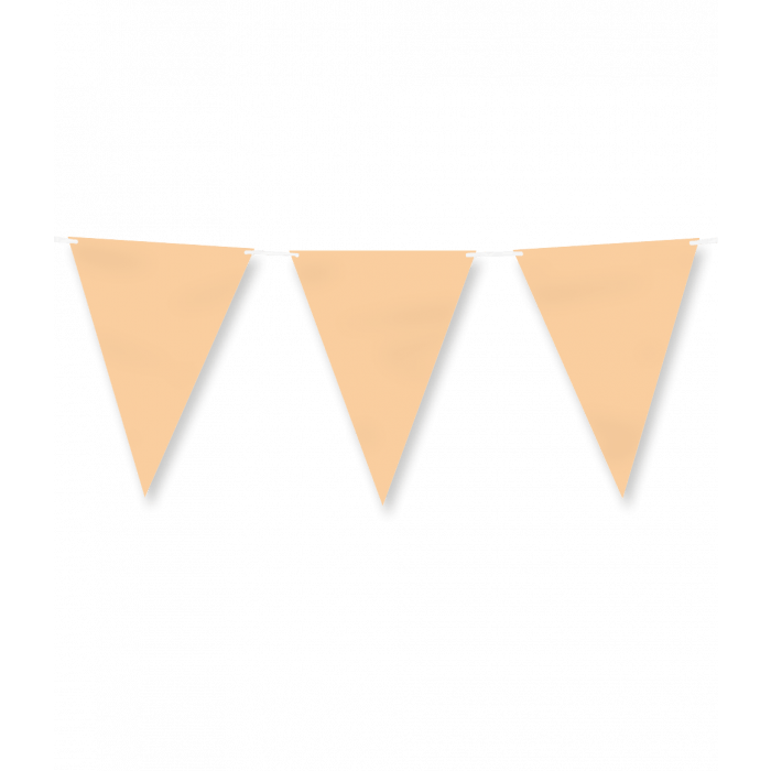 Pappersflagglina - Pastellorange är den perfekta flagglinan på en fest där färgen pastellorange är temat. Den här pappersflagglinjen har en diskret längd på 6 meter och passar perfekt ihop med andra pastellorangefärgade föremål som konfetti, dukar, tallrikar, muggar, servetter och snackslådor. Presentera dessa artiklar tillsammans så att det blir tydligt för kunden vad denna kollektion består av. Flaggorna är tillverkade av papper, vilket gör det till ett miljövänligt val!