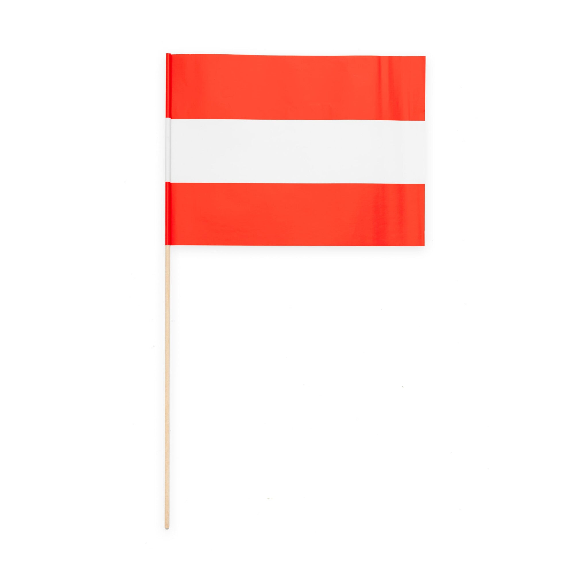 Hela flaggan, inklusive pinnen, har en total höjd på 50 cm, medan flaggan ensam mäter 20x30 cm.