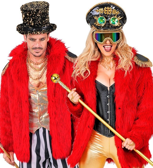 Den här plyschiga pälsen i röd uni är ett slående och snyggt blickfång för både män och kvinnor. Perfekt för Karnival, temafester, 80/90-talsfester eller en felaktig fest.