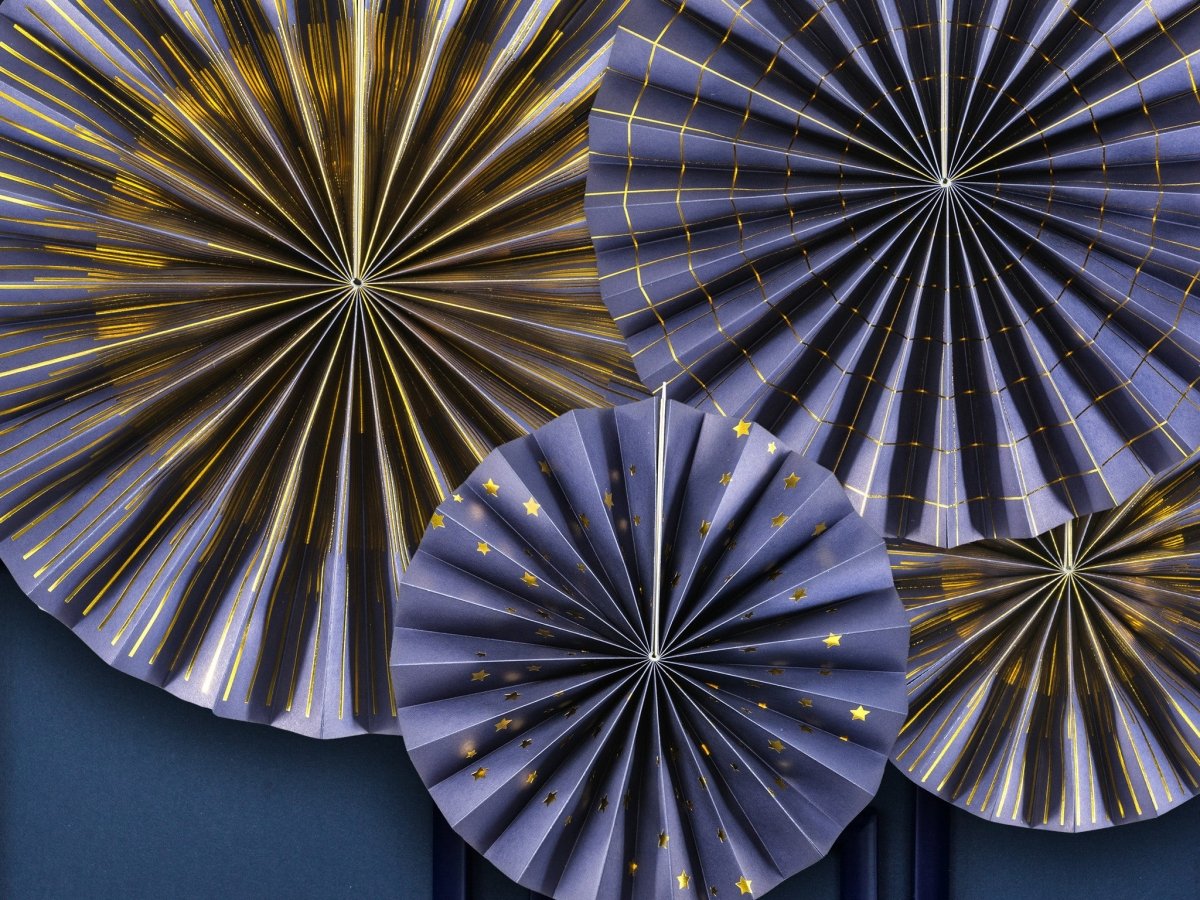 Paper Fans Blå Set 23-40cm 4 delar