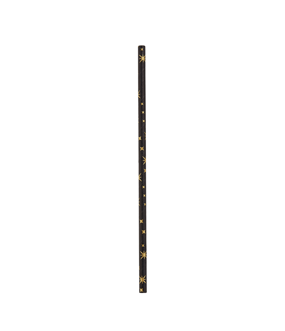 Papperssugrör Guld Stjärnor Svart 20cm 8st