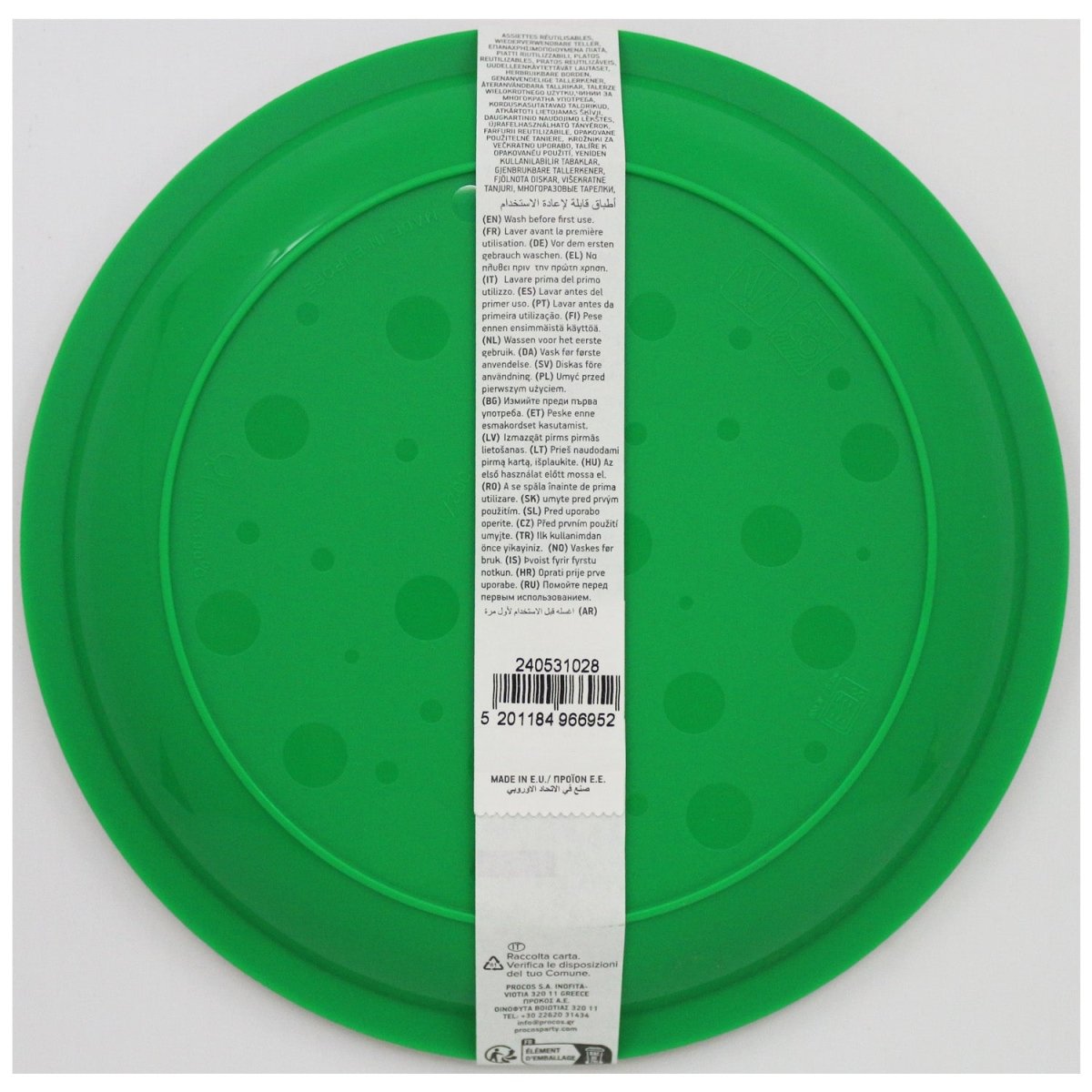 Förpackningens innehåll: återanvändbara tallrikar