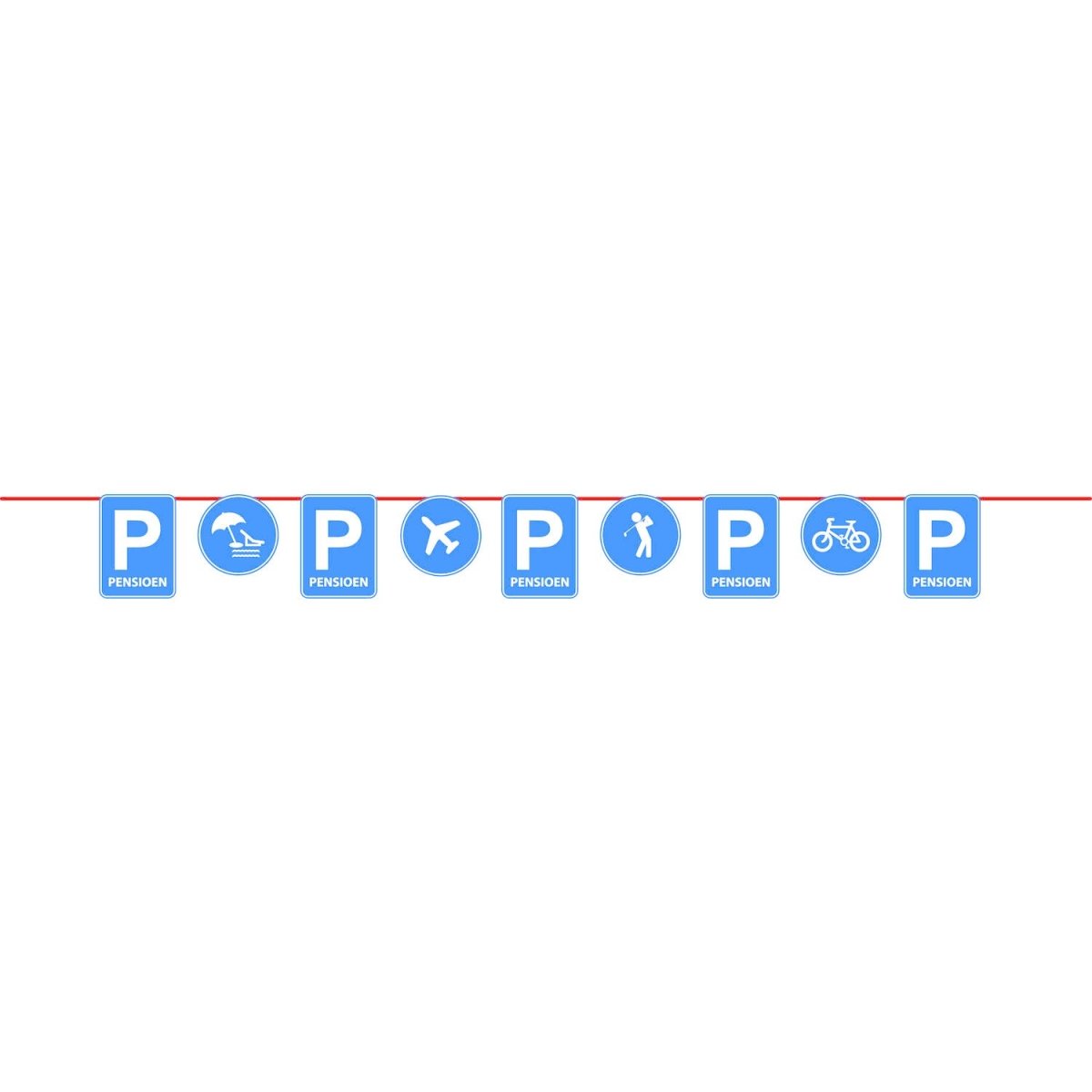 Pension Parkeringsskylt Flagglina - 10 meter. Innehåll: 1 flagglina. Färg: Blå. Produkttema: Pensionering. Kan t.ex. användas under följande fest/festtillfällen: Förtidspensionering/pensionering. Denna girlang är 10 meter lång. Artikeln är tillverkad av papper.