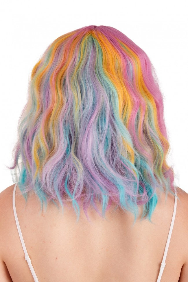 Peruk Alicia Halv Lång Med Våg Med Lugg Pastellfärger