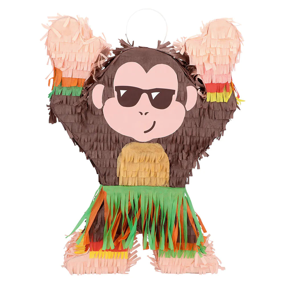 Skapa en tropisk och glad stämning på kalaset med denna roliga hula dansande apa piñata! Piñatan är perfekt för födelsedagskalas, sommarfester och temafester. Hawaii-apa-piñatan kan fyllas med godis, leksaker eller konfetti. Med sin roliga design och färgglada utseende erbjuder den inte bara en spännande aktivitet för gästerna utan kan också användas perfekt som dekoration.