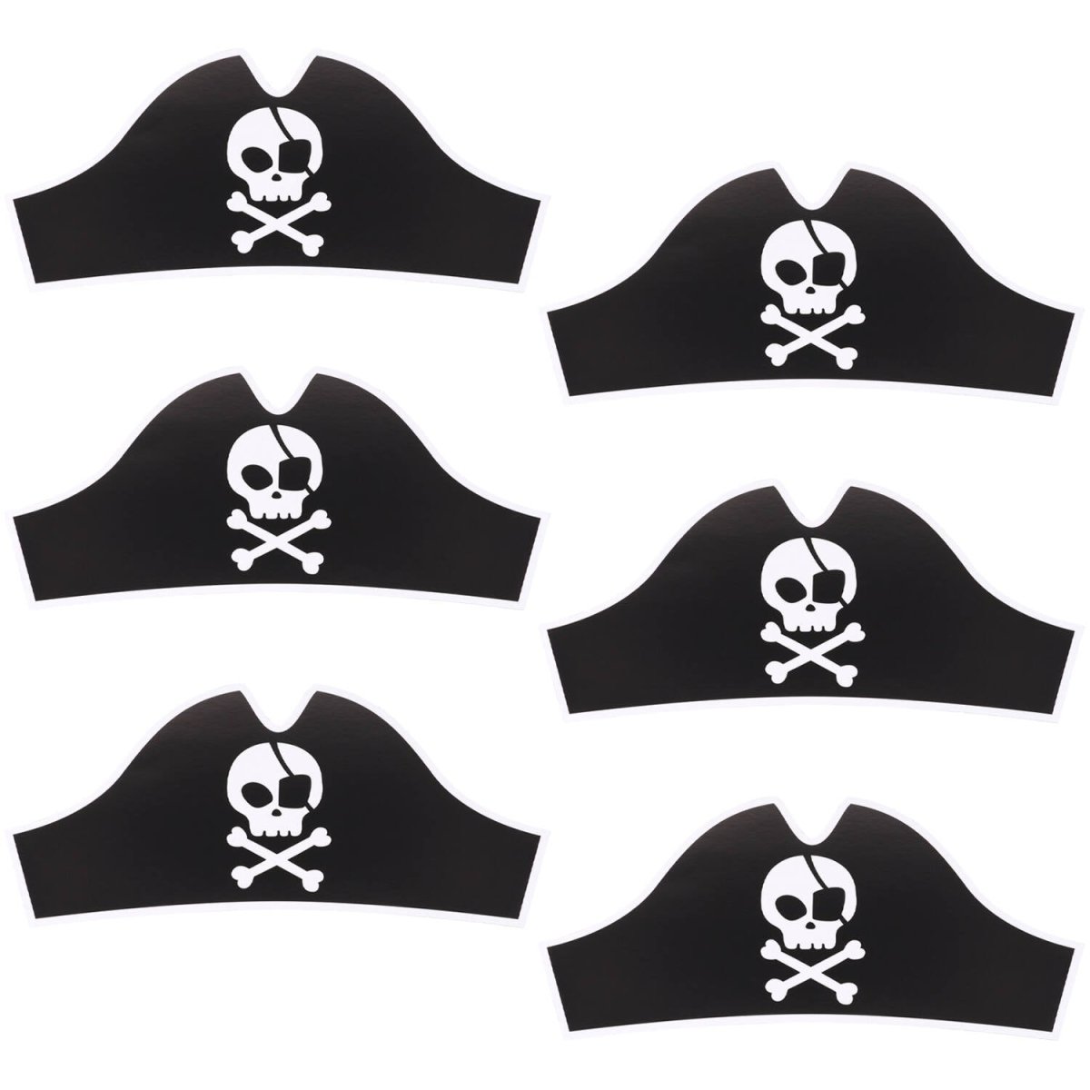 Förvandla dig till en riktig pirat. Pirathattar - Piratparty - 33,5 x 15 cm - 6 stycken. Innehåll: 6 stycken partyhattar. Kan t.ex. användas under följande fest/festtillfällen: Barnkalas, Födelsedag, Temakalas. Dessa partyhattar med dödskalle är 15 cm höga. I förpackningen finns en sort: svart med vitt brätte och en piratdödskalle. Hattarna är platt packade och kan enkelt vikas ihop till en hatt. Med de 33,5 cm långa gummibanden sitter hattarna stadigt på huvudet. Detta dekorationsset tillhör vår Pirate Party-kollektion. Denna artikel är tillverkad av papper.