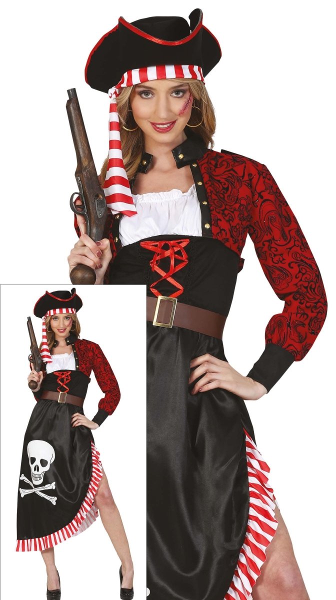 Piratklänning Röd Svart Damer